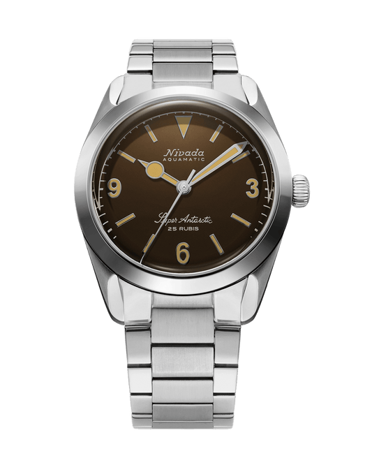 A pioneer of automatic watches since 1930, Nivada Grenchen launched the Antarctic in 1950, a waterproof automatic watch worn by the US Navy's Deep Freeze 1 expedition from 1955 to 1956. In 1961, the Chronomaster, a chronograph water-resistant to 200 metres, was born, followed by the Depthomatic in 1964, the first diving watch with a depth indicator, and the Depthmaster in 1965, resistant to 1000 metres.