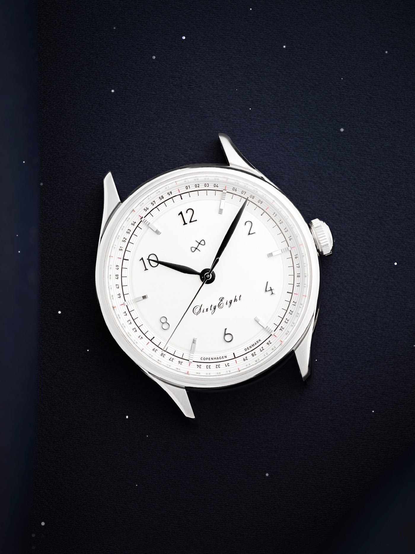 AV86 (ex About Vintage), entreprise Danoise, conçoit des montres inspirées des grandes décennies horlogères. La 1968 SixtyEight blanche illustre cette philosophie en mariant design rétro et assemblage contemporain, pour offrir une montre élégante et durable à un prix accessible.