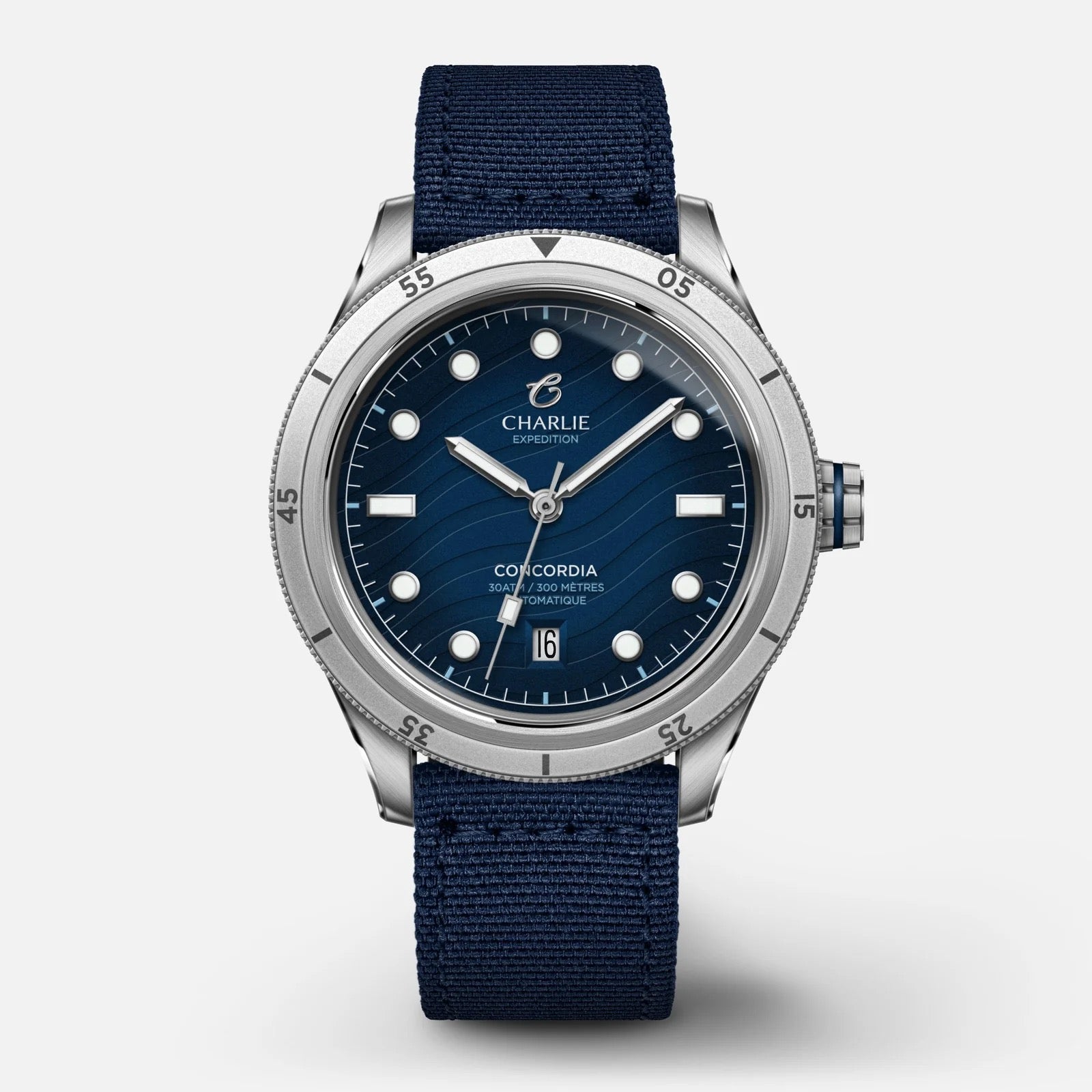 The Charlie Paris Concordia Automatic Nazaré on a blue nylon strap is the perfect choice for those seeking a watch that combines refined aesthetics with technical performance. Whether for your most daring adventures or for everyday wear, it will adapt to any situation with elegance and reliability.