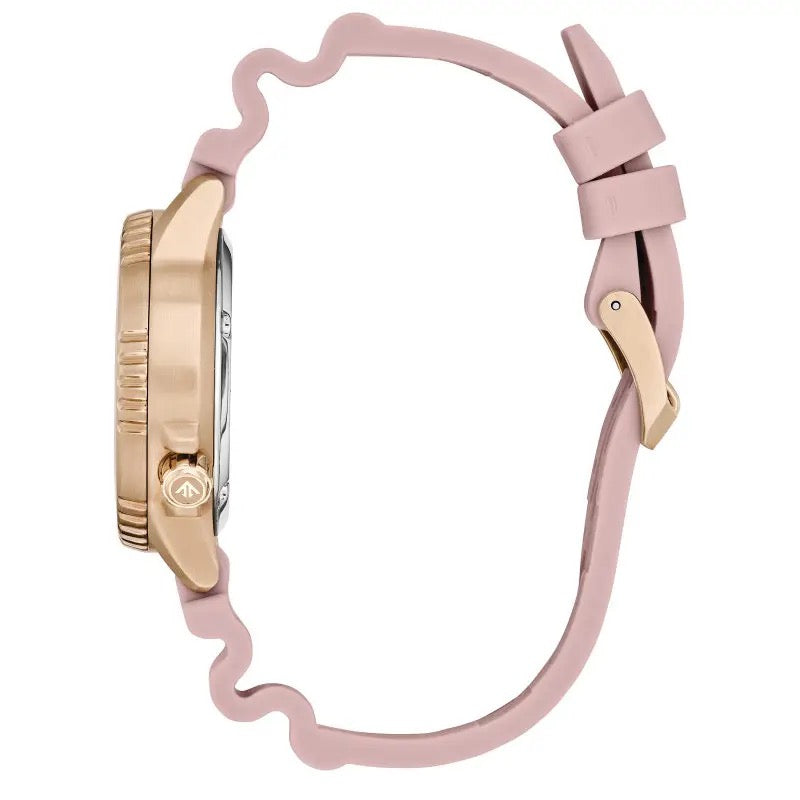 La Citizen Promaster Eco-Drive Diver Rose EO2023-00A fait partie de la collection Promaster de la marque Citizen, incarnant une montre-plongée compacte, mixte et performante. Avec un boîtier en acier inoxydable de 36,5 mm et un bracelet en polyuréthane rose, cette Citizen Promaster Diver Rose Bicolore s'adresse aux poignets féminins. Citizen nous propose une vraie plongeuse professionnelle pour femme, et c'est assez rare sur le marché pour le souligner.
