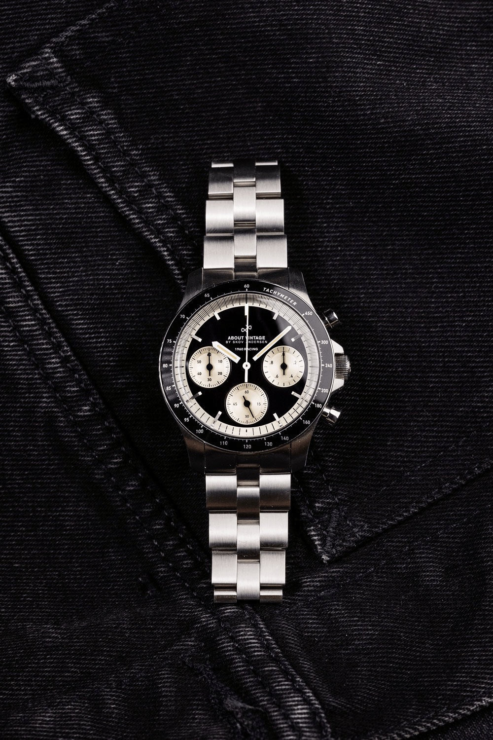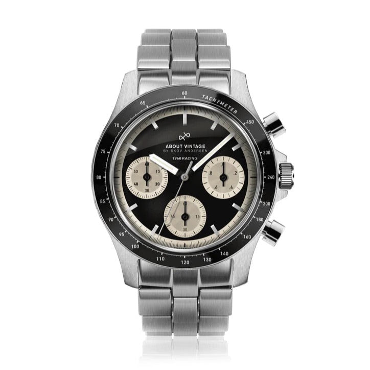 ACERCA DE VINTAGE: CRONÓGRAFO DE CARRERAS DE 1960 - ACERO / NEGRO Y BLANCO GRUTO