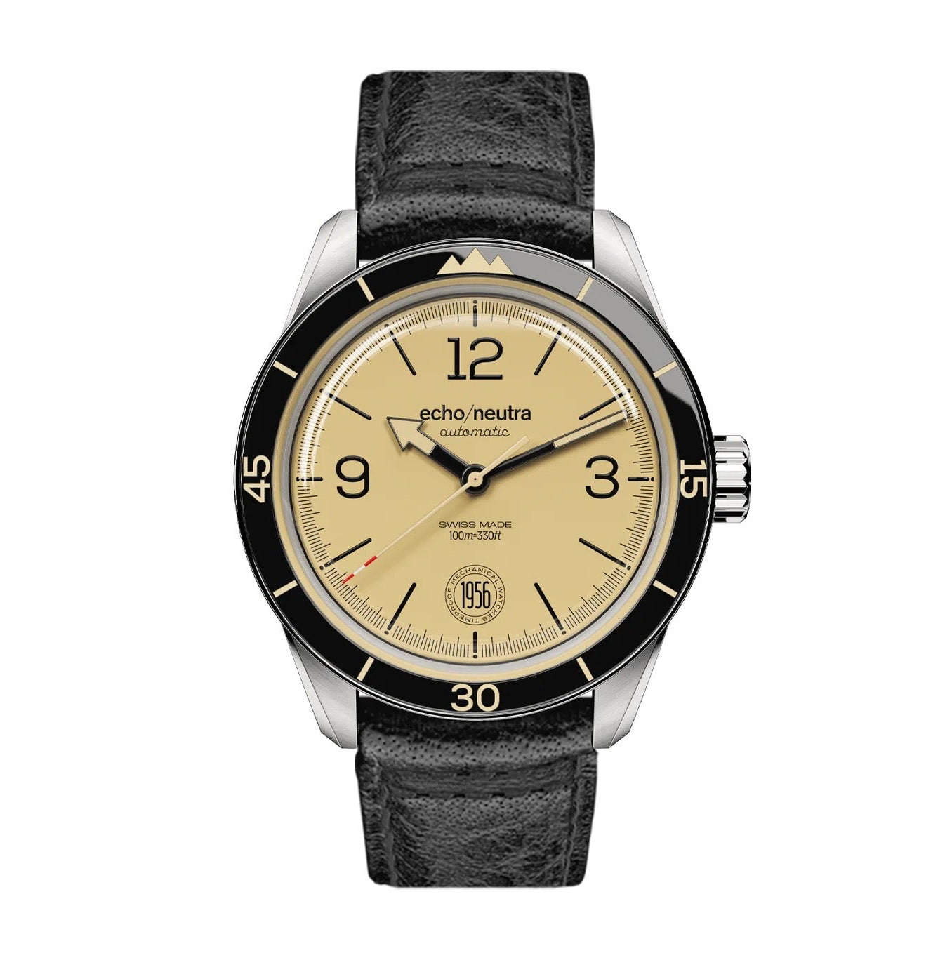 Este reloj Echo Neutra 1956 3H caqui está equipado con un movimiento automático suizo Sellita SW200-1, reconocido por su precisión y robustez. Sumergible hasta 100 metros, el Echo Neutra 1956 3H caqui está listo para todas tus aventuras diarias. El fondo de caja atornillado revela un grabado del perfil alpino italiano, un guiño a las raíces de la marca. Equipado con una correa de piel italiana, el Echo Neutra 1956 3H caqui es un reloj diseñado para durar.