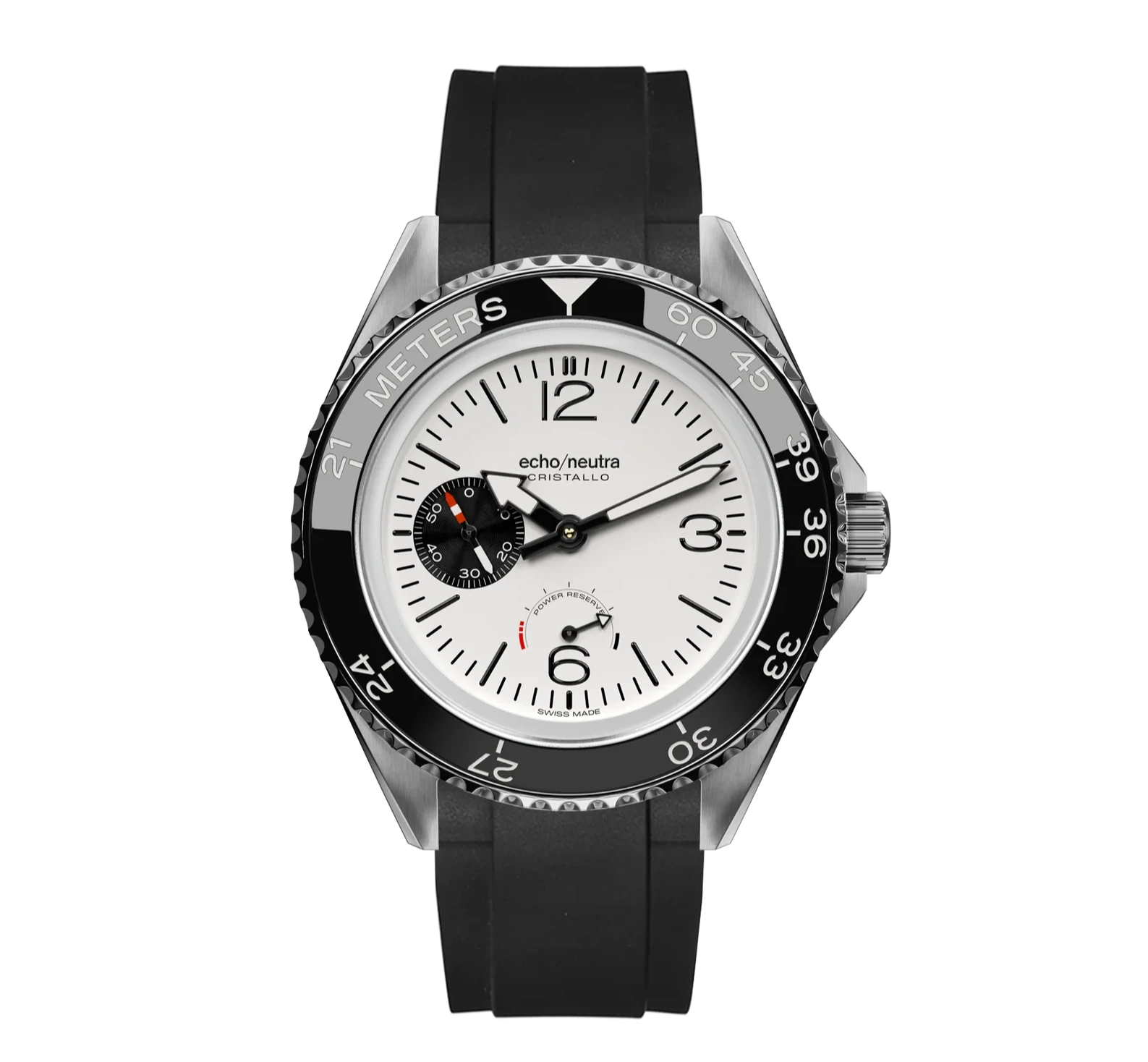 Descubra el Echo Neutra Cristallo Professional Diver White , un reloj de buceo suizo que combina un diseño elegante con un rendimiento técnico de alto nivel. Diseñado para buceadores profesionales y entusiastas de las aventuras submarinas, este reloj ofrece una legibilidad excepcional y una gran durabilidad.