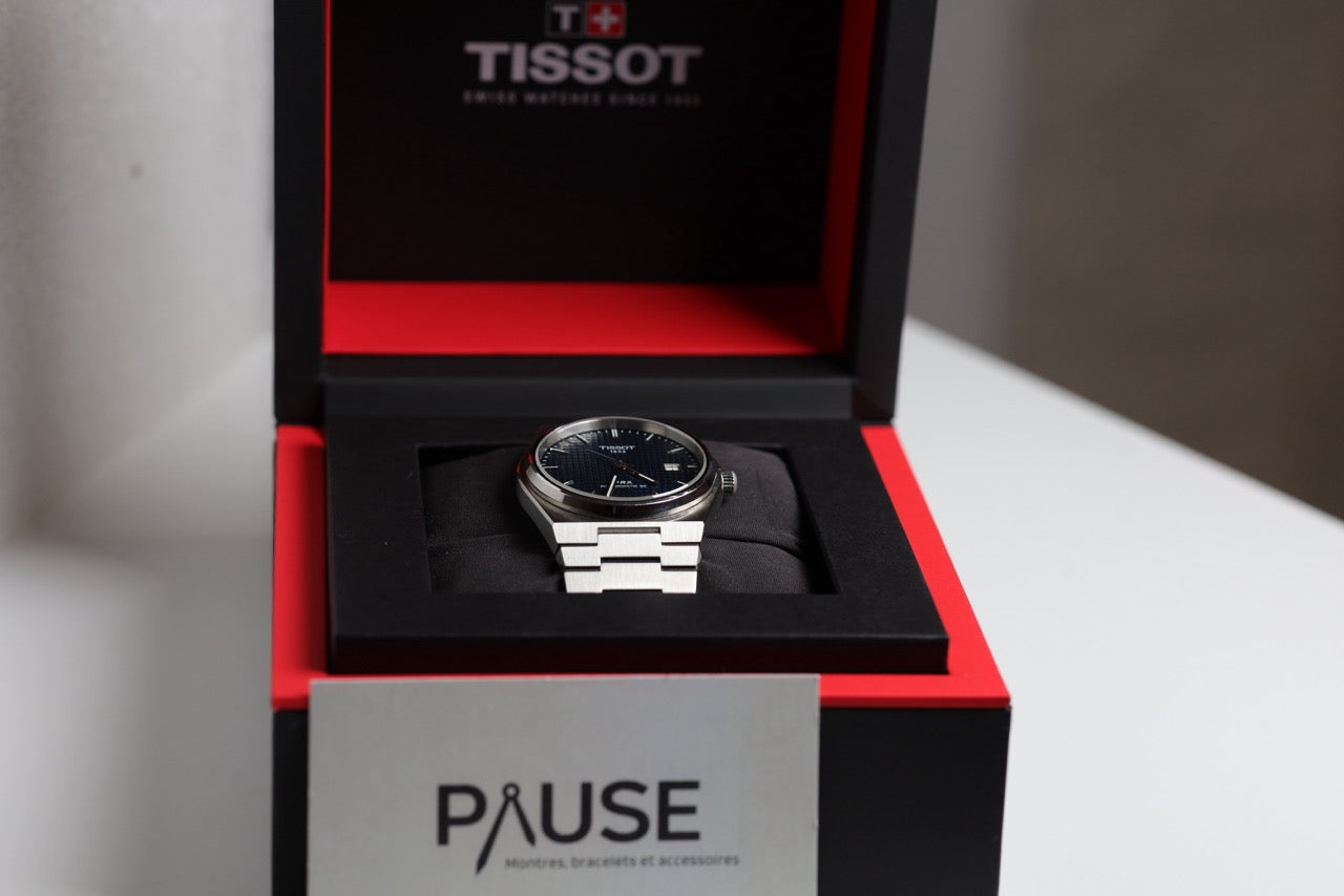 Elegir este Tissot PRX azul significa optar por un reloj automático con un diseño neo-vintage impecable. Su brazalete integrado, su distintiva esfera texturizada y su movimiento con una reserva de marcha de 80 horas lo convierten en un reloj especialmente versátil con una trayectoria probada. Su excelente estado lo convierte en una compra segura y asequible, especialmente en comparación con su precio original de 775 €.