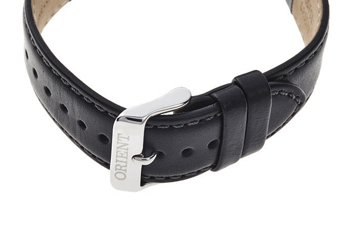 Mouvement : Mécanique Orient Cal. F6724 (automatique, remontage manuel, stop-seconde, 21 600 A/h, 22 rubis)