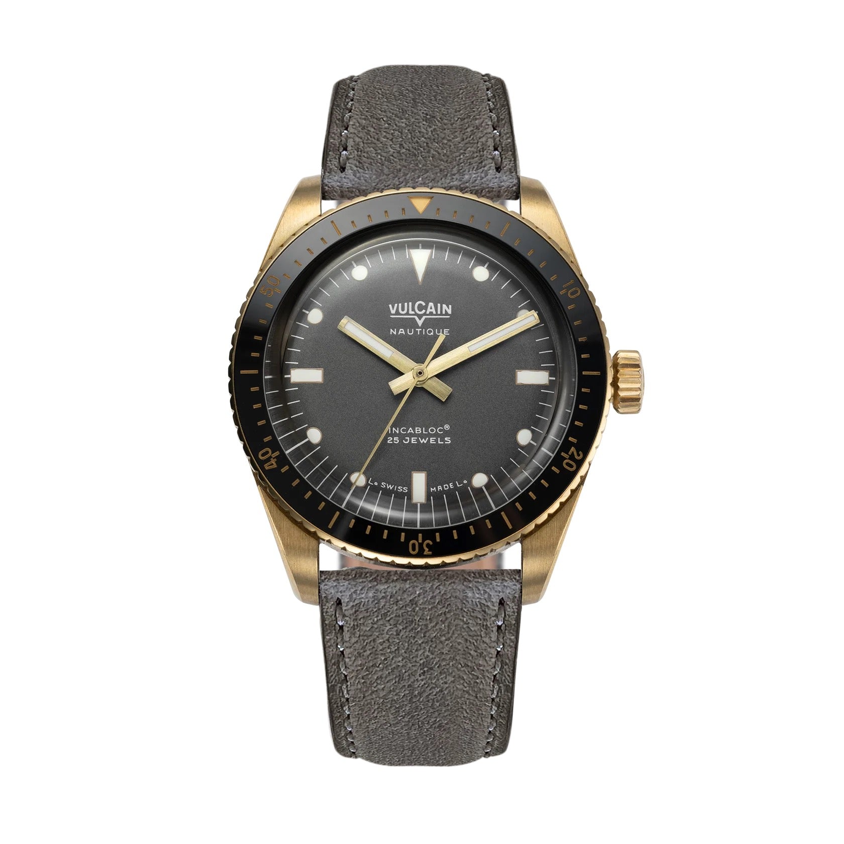 Fundada en 1858 en La Chaux-de-Fonds , Vulcain se ha consolidado como un referente en la relojería suiza. Famosa por su reloj despertador "Cricket", usado por varios presidentes estadounidenses, Vulcain cultiva una sólida tradición. Con el Skindiver Bronze Gray , Vulcain retoma su tradición de relojes de buceo, añadiendo un toque de sobria modernidad y una sensación vibrante y natural.