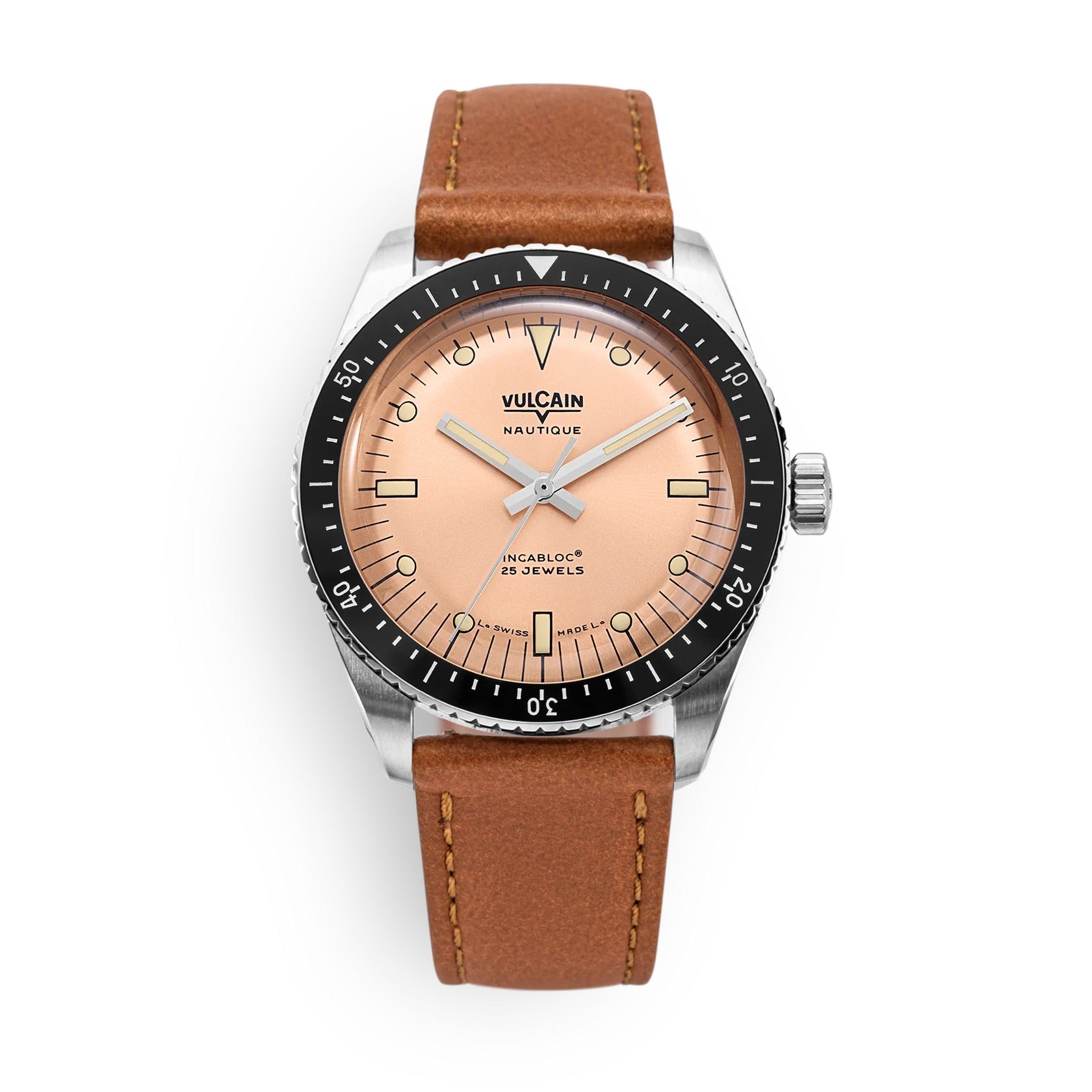Durante más de 160 años, Vulcain ha encarnado la innovación relojera suiza. Famoso por crear el icónico Cricket, el primer reloj de pulsera con alarma usado por presidentes estadounidenses, Vulcain se mantiene independiente y fiel a sus raíces en La Chaux-de-Fonds. Con el Vulcain Skindiver Nautique 38 mm Salmon , la marca reinterpreta una leyenda del buceo, combinando el encanto retro con el rendimiento moderno.
