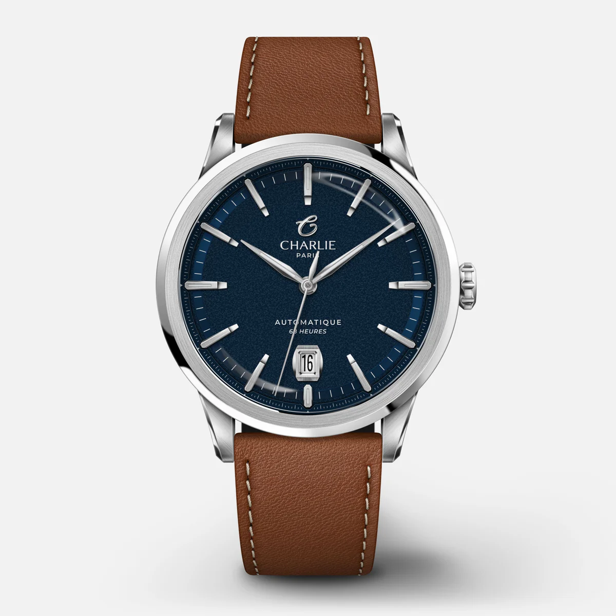 La Charlie Paris Alliance Automatique 68H Bleu est une montre conçue pour les amateurs d'horlogerie fine, mêlant design épuré et technologie de pointe. Son cadran bleu sablé offre une lisibilité parfaite, tandis que le bracelet en cuir ajoute une touche de sophistication et de modernité.