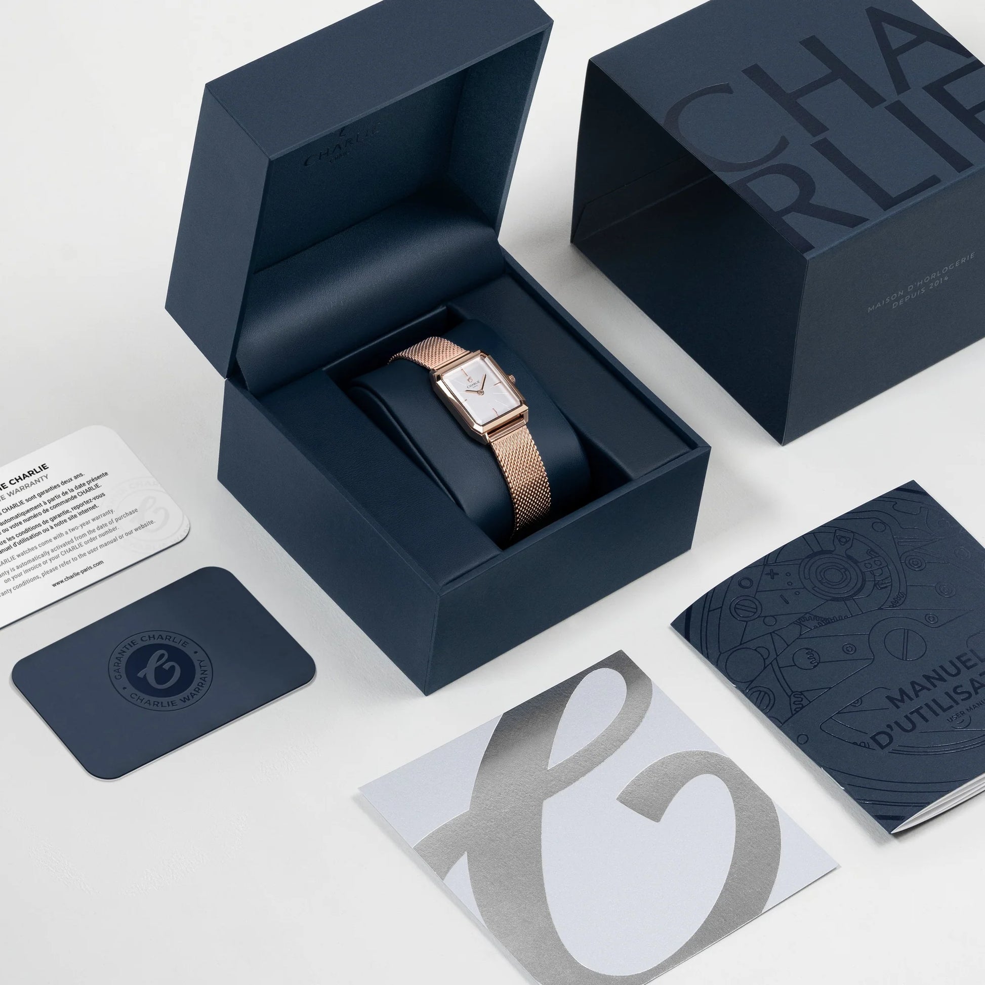 Fondée en 2014, Charlie Paris est une maison française indépendante, dessinant et assemblant toutes ses montres à Paris. La marque se distingue par une approche responsable – production locale, composants robustes, emballages écologiques, et transparence tarifaire. Elle propose des gammes accessibles, modernes, allant de l'élégance pure avec Initial et Alliance jusqu'aux gammes sportives avec Concordia. Charlie Paris propose également une vaste gamme de montres pour femme.