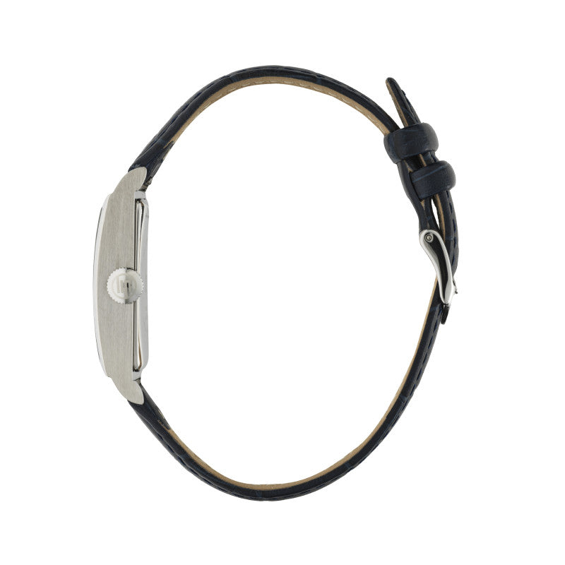 Conçue et fabriquée à Besançon, la LIP T24 met en avant le savoir-faire de LIP jusque dans les détails, avec un fond plein gravé LIP. Son boîtier en acier inoxydable 316L poli et brossé, ses proportions équilibrées et son bracelet cuir bleu façon crocodile donnent à la Churchill T24 un caractère habillé, sans ostentation.