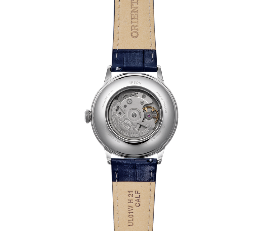 Animée par un mouvement automatique manufacture Orient, la Bambino bénéficie du remontage manuel et de la fonction stop-seconde, garantissant précision et confort d’utilisation. Son fond transparent permet d’admirer le mouvement en action, confirmant l’ADN mécanique propre à Orient.