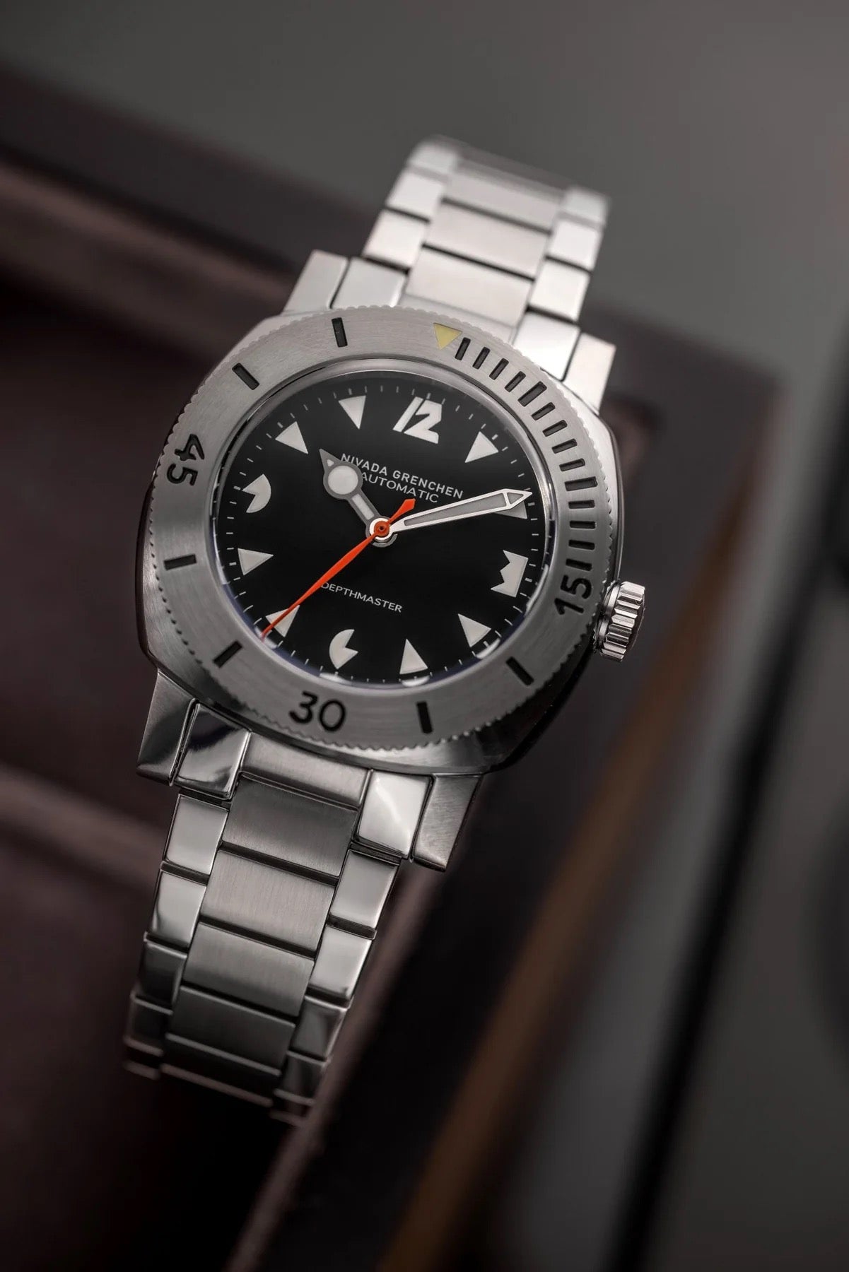 Choisir la Nivada Grenchen Depthmaster Pacman, c’est s’offrir une plongeuse historique, au design distinctif et à la robustesse éprouvée. Une montre qui mêle esprit rétro et fiabilité suisse. Une toolwatch parfaite pour les efforts les plus extrêmes, comme pour un accompagner un style original.